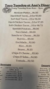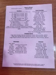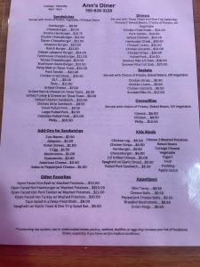 ANN’S DINER MENU