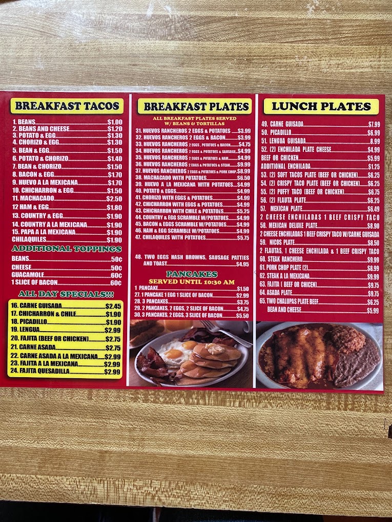 - Breakfast Specials: Start your day off right with Nico’s Mexican Restaurant’s delightful breakfast specials. From huevos rancheros to breakfast tacos, you’ll find a range of satisfying options to kickstart your morning.